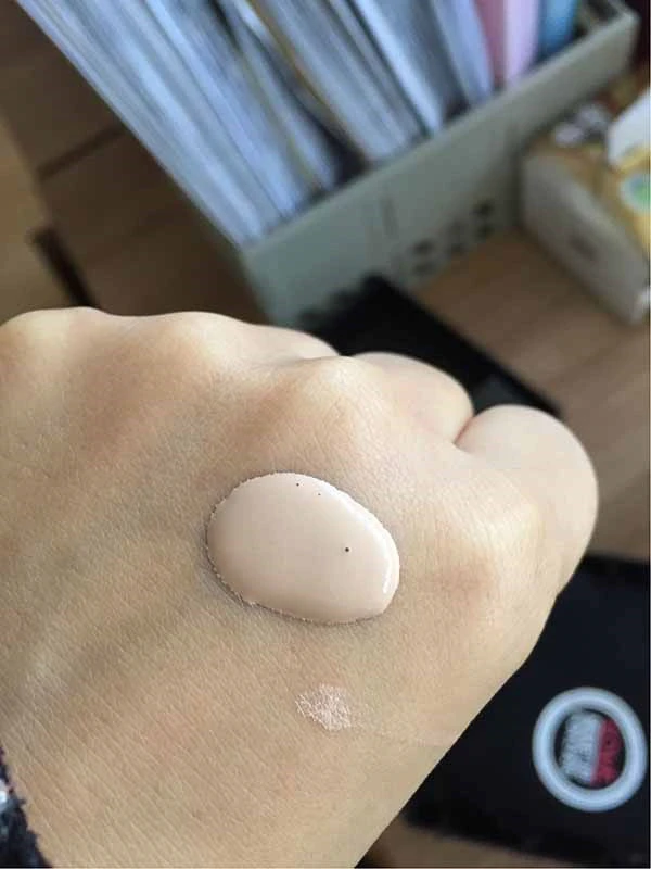 挤出来基本没有流动性,质地细腻。粉底细腻轻薄,好上妆,不厚重,遮毛孔完全ok,妆后近看基本看不出毛孔,颜色重的斑是完全遮不掉的,要配合遮瑕产品使用。