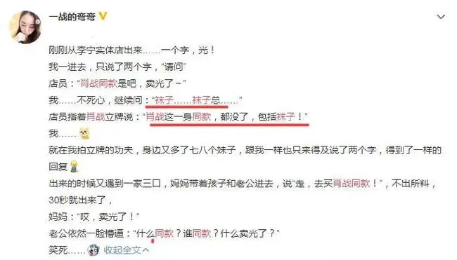 而很多网友表示,当自己还在考虑鞋子的尺码,却发现什么都没了,连肖战同款袜子都买不到了。