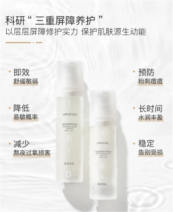 丽普司肽安肌水乳刚开始用的时候就是觉得日常补水而已,用多几次才发现它们的好,而且那个水和其他的水乳的水完全不一样有种精华的感觉,抹开之后就变的像水一样很好用,一套才百来块用几个月没问题,健康肌用它日常补水维稳小脸越用越嫩,用了一个星期左右很不错,油痘肌轻微泛红和刷酸产品一起用的,稳定修护和保湿效果不错。