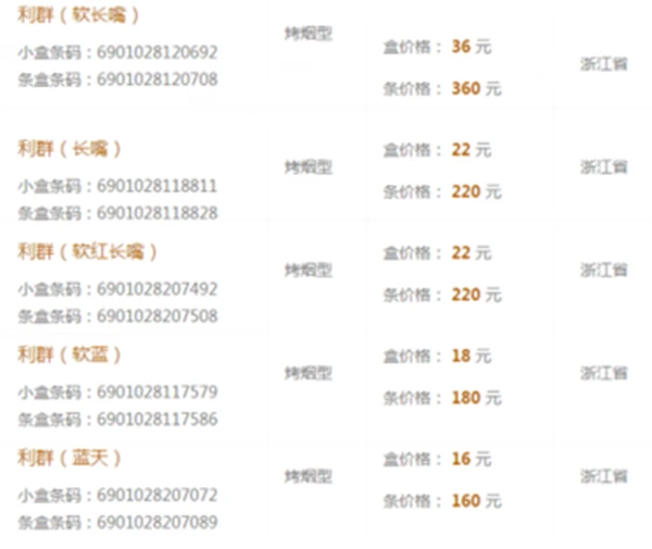 当然利群香烟当中也有价格相对贵的,例如利群休闲和利群逍遥都是档次比较高的,价位现在被卖到800元左右一条。除了这几款价位相对较低的和较高的,利群里面也有价格适中的几个种类,利群软长嘴是价格上比较适中的,不是中低档也不是高档,价格一般是400元左右一条。