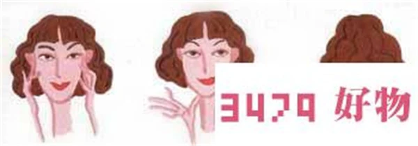 03Step2:以相同的手势由鼻翼上达太阳穴,再由下巴往面颊处画圈,最后以手掌包覆整个下巴,来回滑动至耳根处轻压结束。
