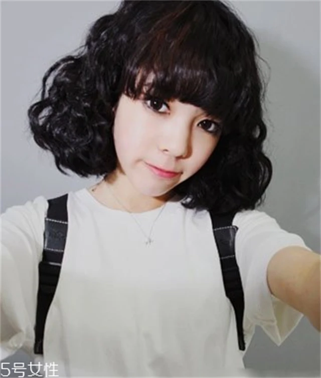 纯黑色的蛋卷头发型,有着比一般的蛋卷头还要衬托优雅澄净的少女修颜效果。齐刘海在额上自然地梳在眼皮上方,在脸颊位置梳起卷曲的秀发的蛋卷头发型,蓬松的层次设计搭配小巧的圆脸脸型,给人更加俏丽的女生形象。