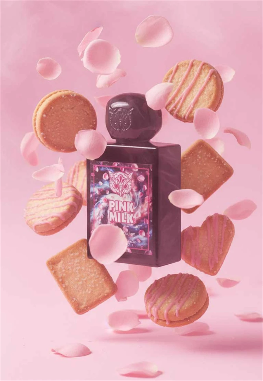 Pink Milk呈现出一幅柔和、朦胧的奶油画卷,其上跃动着充满活力的玫瑰色调,赋予其缤纷色彩:粉红胡椒、覆盆子、荔枝、大马士革玫瑰、保加利亚玫瑰和巴基斯坦玫瑰,以及闪耀的粉红葡萄柚,无一不在挑逗着感官。曲奇、糖和奶油则注入了令人垂涎的美食气息,让人联想到纵情享用的精致糕点。与此同时,杏仁、椰奶、白麝香、香草和奶油感的木质香调丰富了牛奶的基底,在增添深度与厚度的同时,也和谐地升华了整体的奶香质感。