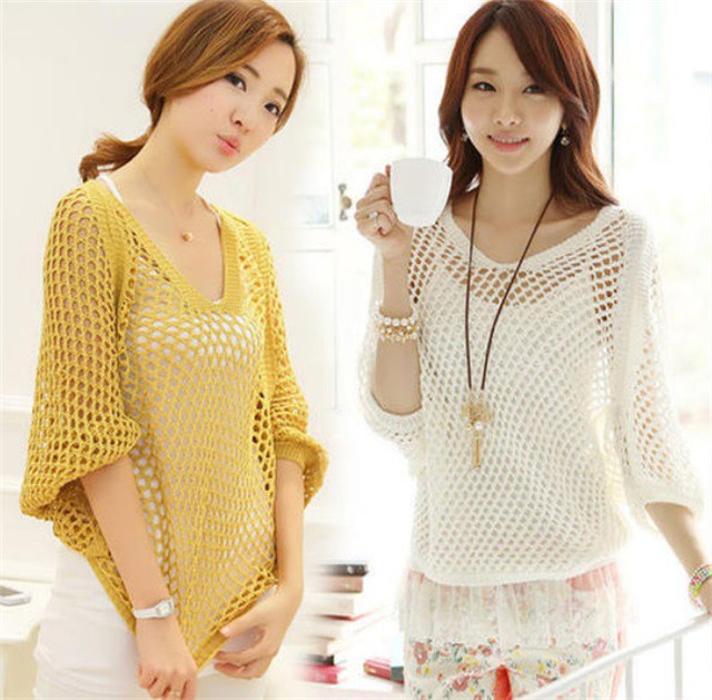 七分蝙蝠袖宽松显瘦时尚百搭纯色V领套头短款镂空针织衫。舒适随意的领口设计,柔滑的弧度中流露出婉约的脖颈线条,精致且优雅。清新淡雅的纯色,拥有高贵的气质,打造出充满清爽气息的造型。精致的镂穿设计,呈现出恰到好处的透视感,不经意间流露出纯真的性感。内搭个吊带下装裙子就非常的好看,很有温婉可人的淑女气质。