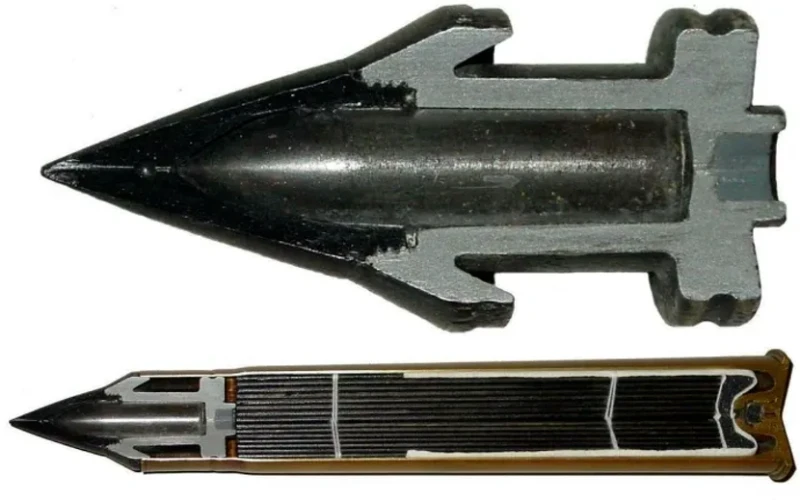 早在二战前,各大军事强国就已研制出硬芯穿甲弹(APCR)或称高速穿甲弹(HVAP),其穿甲核心是由高硬度材料制成的弹芯,外层包裹轻密度弹体使其弹体总重下降,在使用相同火炮发射时初速提升明显。相较于同口径的全口径穿甲弹,硬芯穿甲弹在穿甲时接触速度更快,接触面积更小因此穿甲能力提升明显。此外,硬芯穿甲弹还衍生出锥形弹(APCNR)这一特化弹种,其只能由锥膛炮发射,特点是带有软质裙边弹带,发射时受炮管挤压变形与炮管贴合更紧密使之拥有更好的闭气能力,从而获得更高的初速。