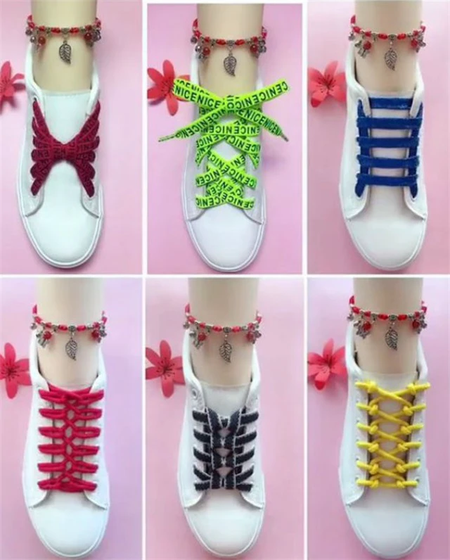 首先就是最常见的蝴蝶结系法,大家按照鞋孔的一个一个的去穿,系起来就OK了,最简单,上脚也是蛮好看的哦