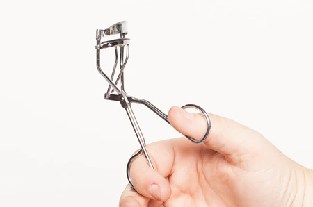 首先,像平时手持剪刀那样拿着睫毛夹,图示是彩妆师给客户夹睫毛的姿势,自己给自己夹需要反过来拿,注意夹睫毛之前,睫毛夹一定要清洗干净,以免细菌等污渍带到眼睛里去了。