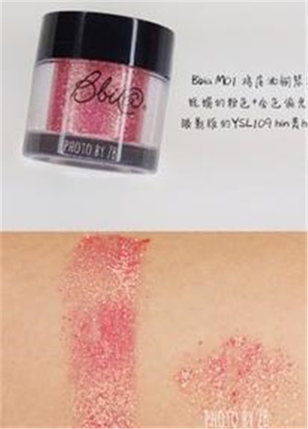 MAC眼影粉Rose色号。实物真的很美粉色里面偏金闪但是飞粉很严重我画完整张脸都沾了这个眼影粉上眼之后的效果也没有它静静躺在瓶子里那么好看最后就没买啦网上说可以涂在嘴上代替人鱼姬但是我觉得它作为眼影粉代替口红吃进肚里还是挺不安全的。