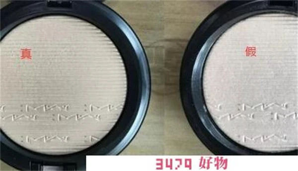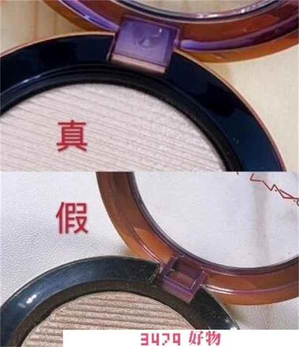正品mac生姜高光粉质细腻,不会飞粉,纹路文字雕刻清晰,不容易带闪;假货粉质色泽度都要比正品偏白,粉质中闪粉比较多,整体看起来不是很精致。