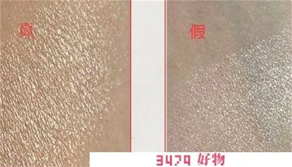 正品高光是香槟色,像是浅金色,细闪很明显,闻起来也有淡淡的香味;假货则是偏银色,与金色不沾边,粉质比较粗,闻起来的香味浓烈,刺鼻。