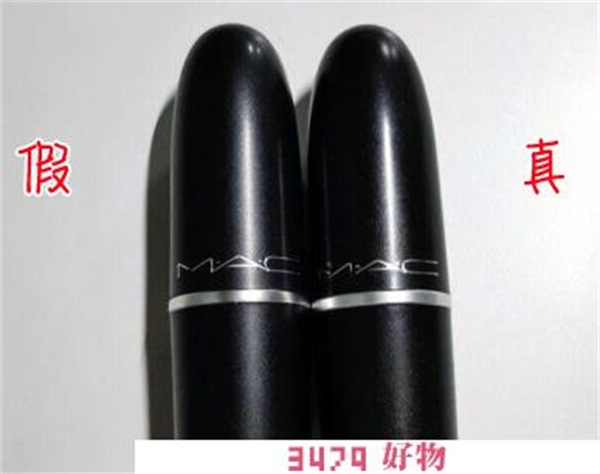 3、通过口红管身上的字体间距分辨真假:正品的Mac口红管与假的mac口红管身上的logo字体位置是不一样的,正品的口红logo要更低一点。