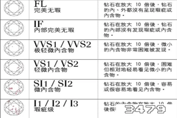 3、净度:购买钻戒时,最好选择净度在SI2级以上的钻戒。净度不好,钻石就会有瑕疵,会影响到美感。目前钻戒净度等级从高到低依次为FL、IF、VVS1、VVS2、VS1、VS2、SI1、SI2、I1、I2。