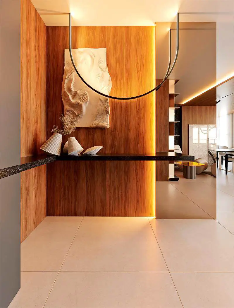 新中式设计,以简约之线条,素净之底色为基底,于空间装饰之中巧妙融入中式元素,既承袭了古代风雅之韵味,又贴切地适应了现代生活的步调,使得整体空间更显开阔明亮,成就了名副其实的新中式风范。当秋意与新中式美学交织,家亦成了回归自然、寻觅宁静的港湾。采用棕色、咖色、浅黄等色块巧妙搭配,不仅与当下秋冬季节流行的“美拉德”家居配色相得益彰,更在秋季的微凉中,为居家环境注入一抹温馨活力。原木色与咖色的和谐共生,共同谱写出一曲“秋日美拉德风”的悠扬乐章,于深浅色彩的交错间,勾勒出诗意盎然的生活图景。