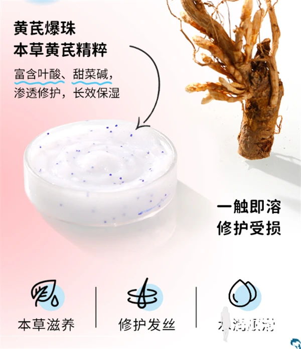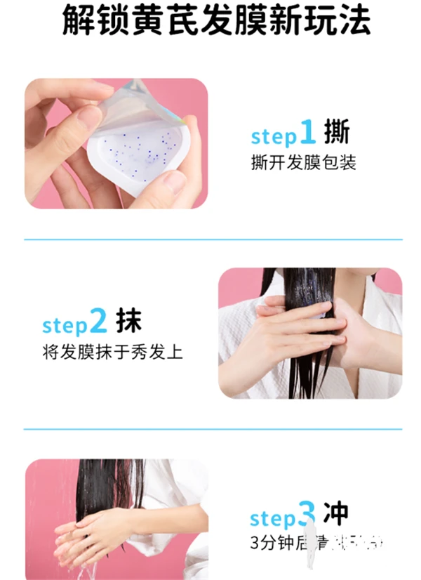 猫皮黄芪发膜用之前查了一下这款发膜的有效成分,发膜里面添加了黄芪本草精粹、4D透明质酸钠、15种氨基酸水解角蛋白和PCA锌。一小颗就是日抛用品,撕开抹在头发上轻轻揉一揉让营养充分渗透,3分钟再冲洗一下就ok非常的方便,洗完以后头发顺滑不打结,保湿滋润不干枯,能够被拯救受损发质。