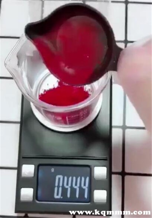 2、烧杯需消毒,放置在珠宝秤上,放入调制好比例的色粉