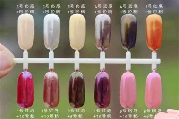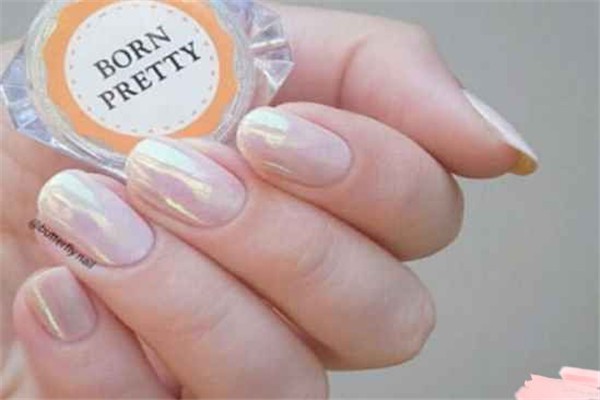 5.用硅胶棒、手指或者棉棒取少量极光粉在甲面轻轻拍打后摩擦
