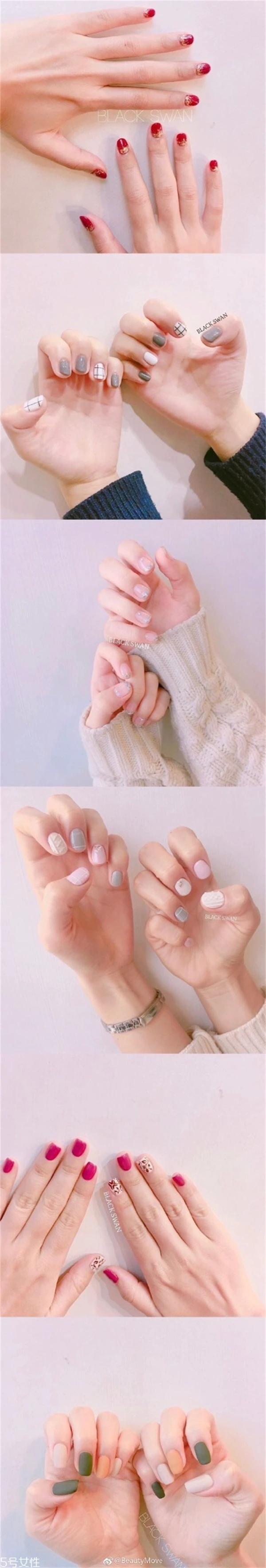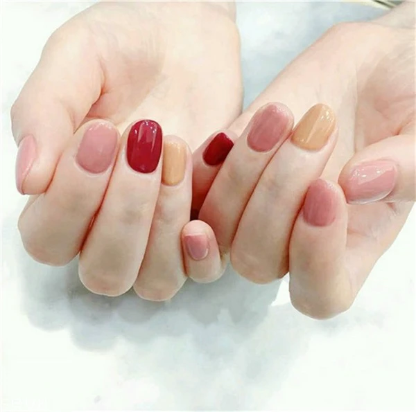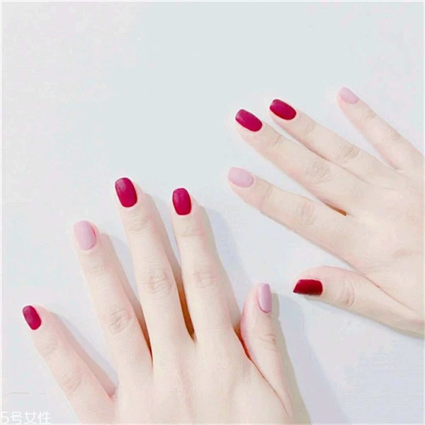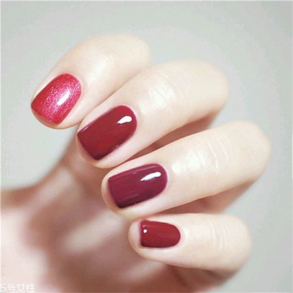 不同色调的红色美甲绝对也是显白的款式,而且也不会显得很单调。