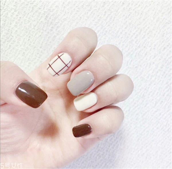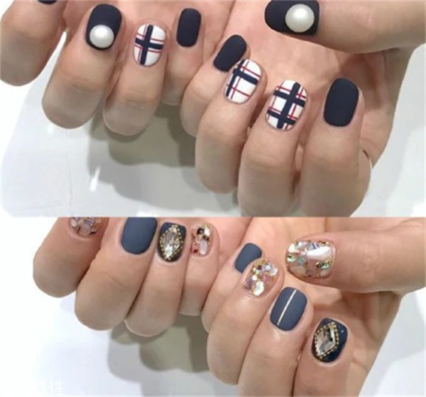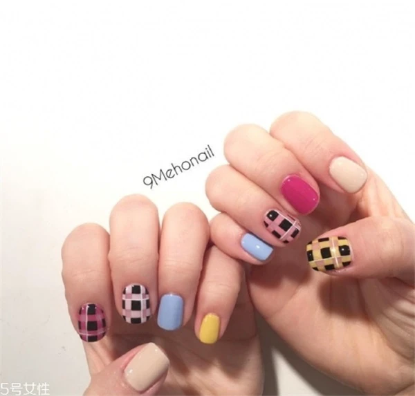 九宫格+跳色设计这款美甲够显设计感,展现出来的美感也是非常棒,喜欢的你可以试试看,还是非常时尚的。