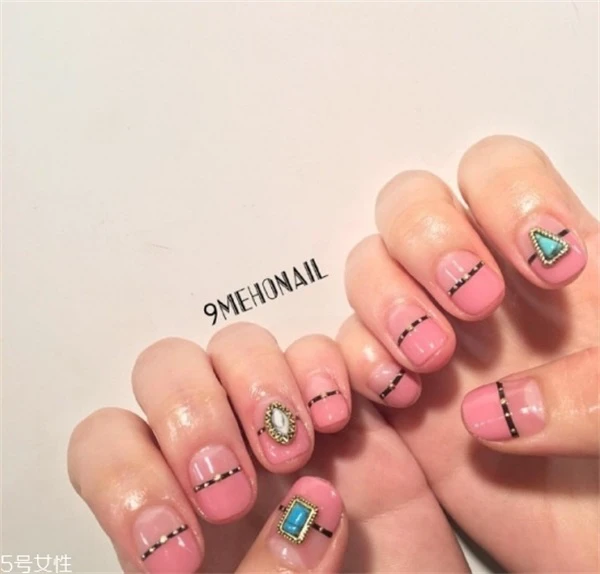 韩式粉色美甲你可喜欢?将粉色涂在手上,绝对是少女心爆棚!加入一点线条设计和钻搭配,立马时尚大气起来。