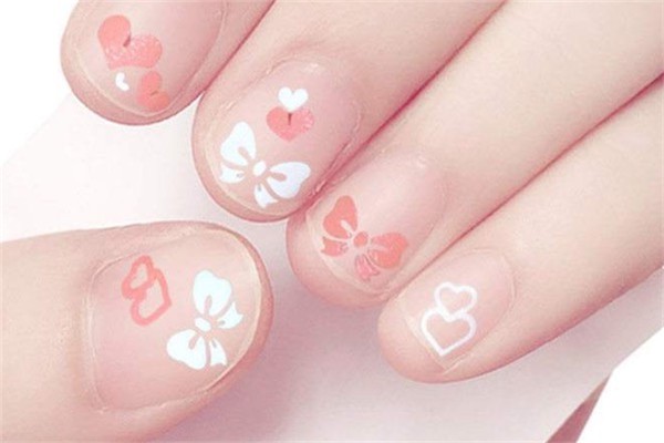 小贴花在美甲时要用在底胶照灯以后,做法是先打磨指甲并且刷上底胶,然后照灯干了以后,选择好自己喜欢的美甲贴纸,大小需要和指甲对比,选好以后将它的保护膜撕下来,用镊子贴在指甲上,用刷子将贴纸抚平避免有气泡,再用海绵磨砂条将外面多余的贴纸给磨掉,然后刷上亮油胶以后再照灯,这样贴纸既好看而且表面还很亮泽。