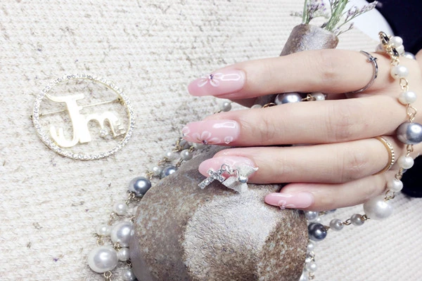 2、贴片美甲,用指甲专用胶水将全片或半片甲片贴在指甲表面,从而造就修长甲型,弥补手型不美的遗憾,缺点是透气性差。