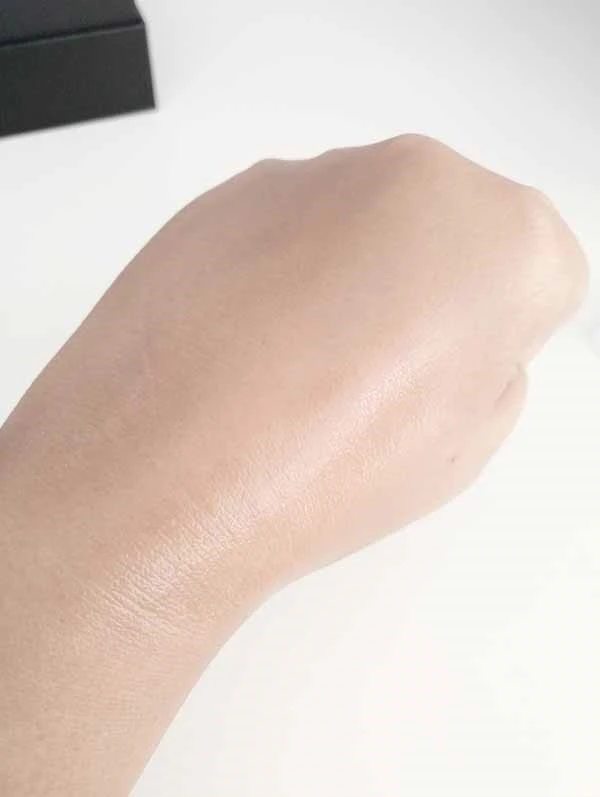 喷在手背试用的时候没拿捏好距离,一片湿润,好在没有流动,是有点点粘稠的液体,晾一会儿就干了。