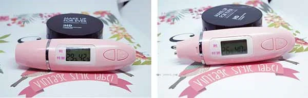 再测试了一下它的保湿度和控油效果,能看到油分确实减少了,但同时水分也减少了。所以干皮妹子不是很适用这款蜜粉,会觉得干。油性和混合性皮肤的女生可以用这一款,清爽控油。