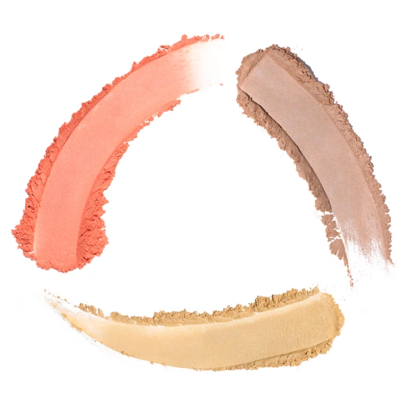 凭借高度创新的包装,您将体验到一个干净、无杂乱的输送系统,可同时均匀分布所有 3 种散粉。只需扭转并涂抹。
