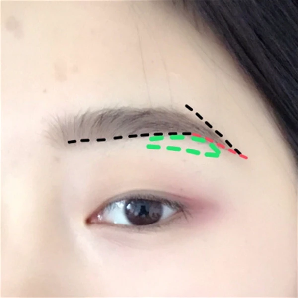 第一条线,眉头下点连到眉峰下面的点,再用微微弧形去连眉尾的点。第二条线,眉头上点连眉峰的点。第三条线眉峰靠前一点开始,画稍微圆弧一点的线到眉尾。如果画不出来,可以照着2画了用刷子蘸取遮瑕膏把眉峰遮掉。
