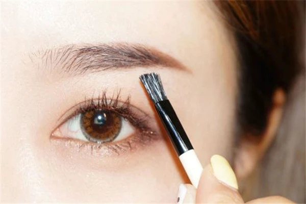 先用斜角眉刷将灰色和棕色眉粉混合,轻轻描整个眉毛。注意不要刷的太实,如果都画满的话会显得比较生硬。用斜解刷沾棕色从眉峰开始画到眉尾,这一段眉毛颜色应该画的最深。换大号眉刷或者螺旋眉刷来回晕染眉头的部分让边界过度更自然。注意眉峰不要太尖锐,不然会嫌凶;眉尾不要拉太长,这样看起来反而没有精神,也不太自然,整张脸都会变长。