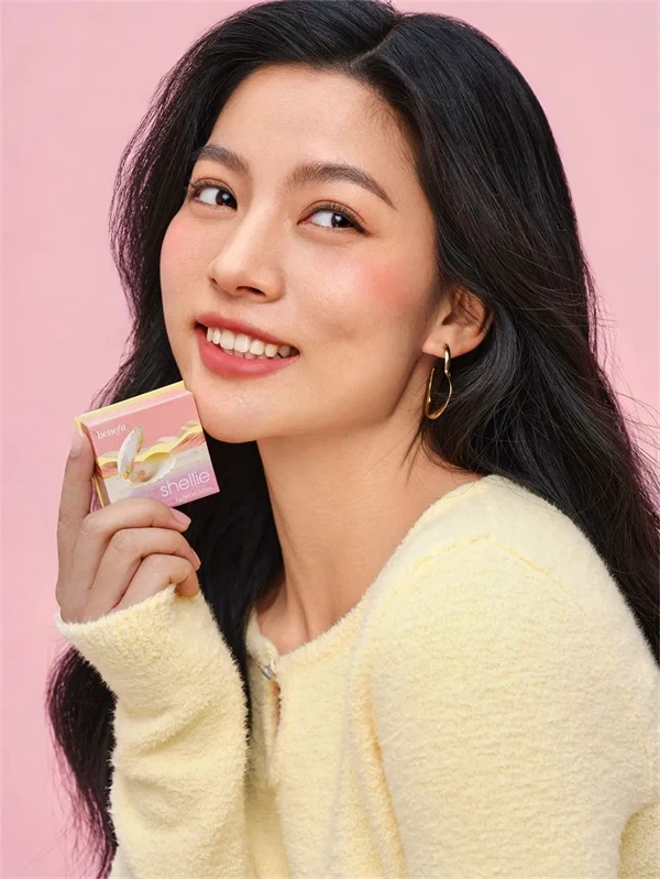 粉晶色系的另一主打色号——贝玲妃金贝沙滩腮红则为中性粉调的流金粉色,其中加入金色细闪,上脸自然柔美,尽显少女气色,为度假、约会等妆容温柔加持,所有肤色均可放心使用。