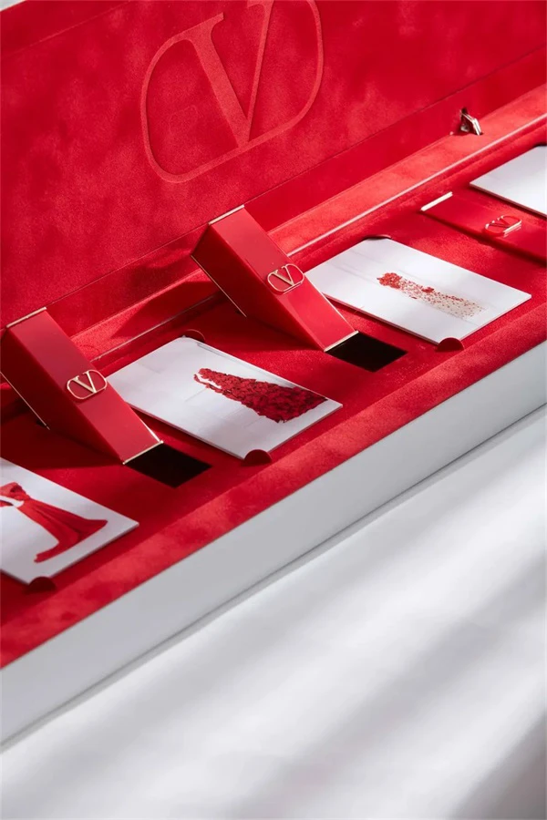 为致敬独一无二的自我,华伦天奴美妆臻献「红」典藏唇膏礼盒。白色漆面外观灵感源于纯白的高定红馆空间,在这里,高级时装和高定彩妆梦幻融合,正如馆内的纯白与五件高级时装的永恒之红碰撞交织,而与之相对应的五支专属Rosso Valentino口红更是对于不同个性的独特表达。开启礼盒,走入由五种RossoValentino明星色号呈现的“红”的世界,仿佛一个迷你的高定红馆,将时间和自由延伸至永恒。一色多面,为每一种自我表达做注解,唯一的红,才配得上无二的你。