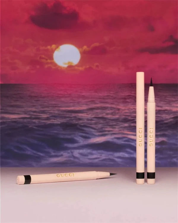 Gucci Beauty第一款液体唇釉,演绎“夕阳”的天蓝色,全新眼线笔