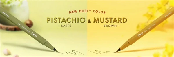D-up 广受欢迎的“Silky Liquid Eyeliner”现已推出令人兴奋的时尚色彩,例如“Pistachio Latte & Mustard Brown”。两种潮流色,增添沉闷感和清新感,成就色泽圆润。