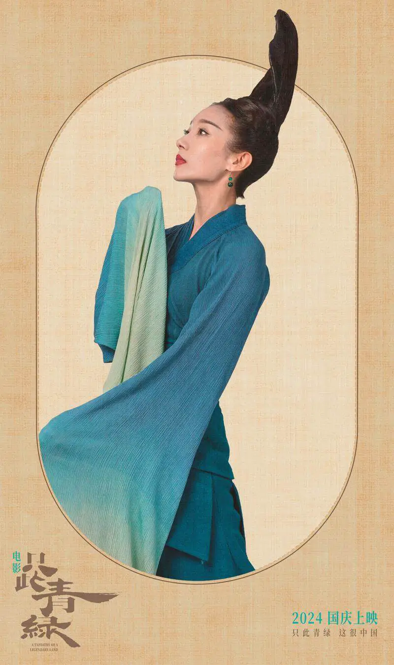在东方文化传统中,青色和绿色有着丰富的象征意义。青色象征着生命的蓬勃与坚韧,绿色则寓意着宁静与和平。在《只此青绿》中,这两种色彩的融合创造出了独特的视觉效果。孟庆旸的服装以青绿为主色调,其设计融合了传统的印染、刺绣工艺,每一处图案都精心雕琢。