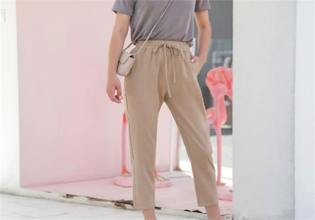 米色裤子搭配白色上衣