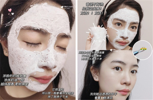 因为Q弹的奶油质地,泥膜很容易在面部推开,每晚大概敷15分钟即可。敷面膜的过程中不用担心泥膜会结块或者干裂,顶着面膜来回走动也完全没有问题。敷完面膜之后先用湿巾擦掉一部分,再用温水直接洗掉,整个脸看起来干干净净,透亮清爽还健康,绝对的吸附油脂、滋养嫩肤的保湿神器。