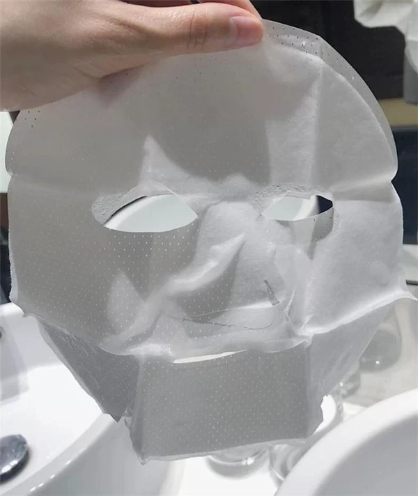 它和无纺布有些像,有一定的厚度,优点是精华会吸附得更多,服帖度也很一般。不过对皮肤很柔和,不会很刺激但是敷在脸上会往下滑动。敏感肌可以尝试,但是需要躺下敷面膜哦。