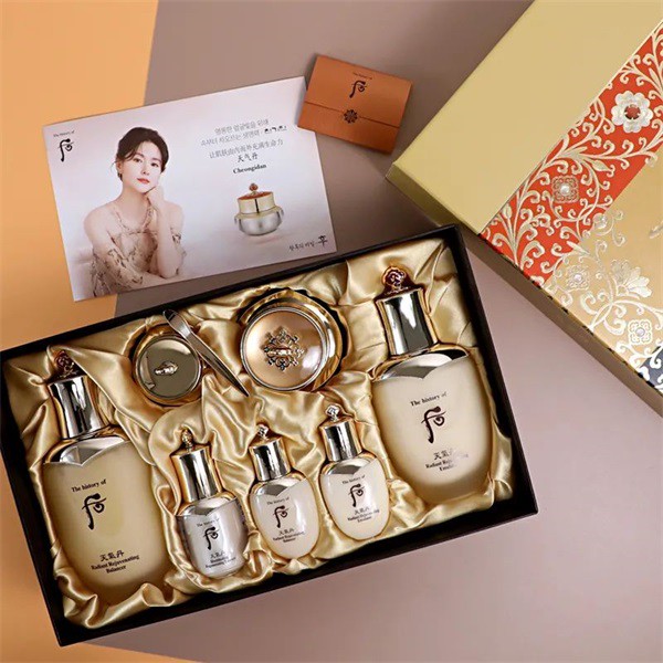 后天气丹华泫水乳霜三件套盒,一整套包含调理水150ml,精华液8ml,眼霜5ml,乳液110ml,面霜10+25ml,采用美容秘方,主要成分有山参玉珠、鹿茸粉骨、黄金朱木等成分,同时还具有天气秘丹,集天气之精华,来打造肌肤,使肌肤散发耀眼光芒。