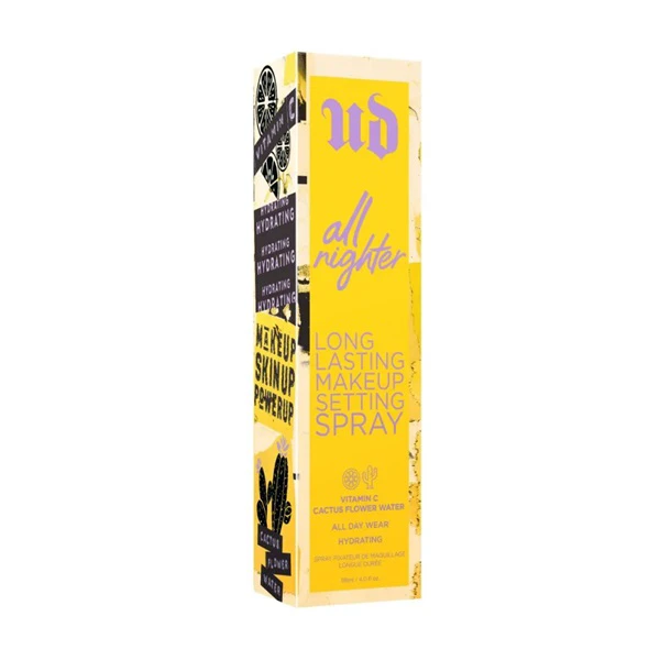 潮流彩妆品牌Urban Decay衰败城市于今夏迎来王牌长效定妆喷雾系列新成员——All Nighter长效定妆喷雾VC保湿版。作为定妆市场上“元老级”明星产品All Nighter长效定妆喷雾系列的新成员,VC保湿版“保鲜大橘喷”在延续长效持妆基础上重重升级,加入特研维C配方,为肌肤锁色驻鲜,焕发“C位”活力,保持妆容鲜活如初。
