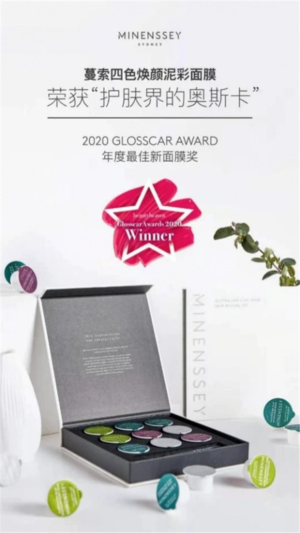 四色焕颜泥彩面膜荣获“护肤界的奥斯卡”,2020 Glosscar Award年度最佳新面膜奖。