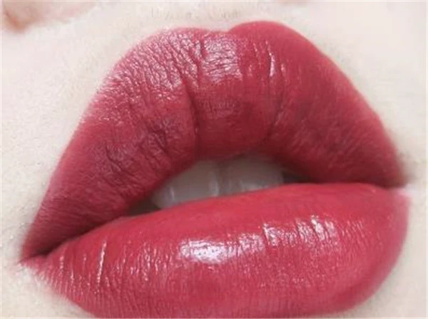 很正的豆沙色,偏红,感觉适合任何肤色,但是厚涂maybe显老,建议涂在唇中央然后抿开。没什么气味,也不染唇,质地很水很薄,但刷头太硬不好描边。
