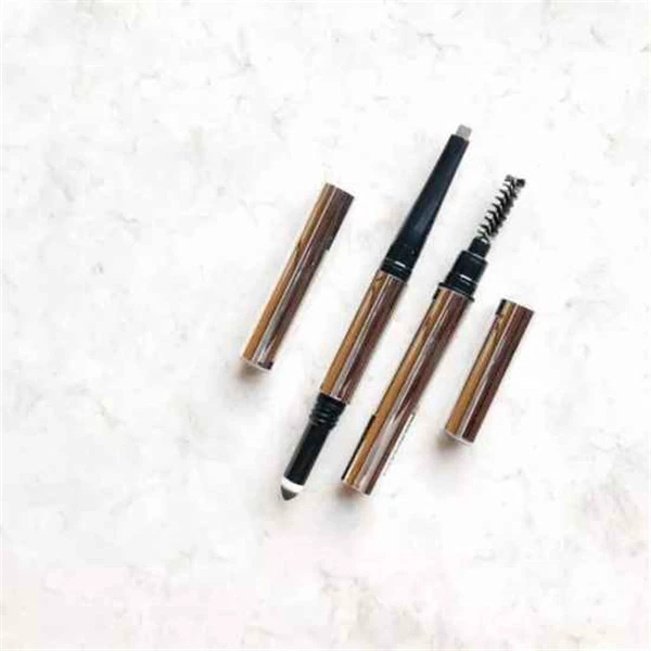 先用眉笔勾勒形状,再用中间的眉粉填充,最后用眉刷刷均匀。