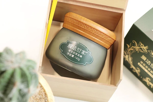 包装很用心,竹制的盒子感觉很有质感,拿在手上沉甸甸的,一点也不廉价,里面还有小勺子,用起来很方便。打开就有很浓郁的绿豆香味,很好闻,质地呈泥状,使用起来还蛮舒服的,用勺子推开会均匀些。等待三四十分钟面膜也不会很干很紧绷,还挺舒服,注意不要乱动,会蹭到衣服上不容易洗掉。洗干净后还挺清爽舒服的,感觉皮肤干净舒爽了,滑滑嫩嫩的,因为是泥状的质地所以比较难清洗干净。