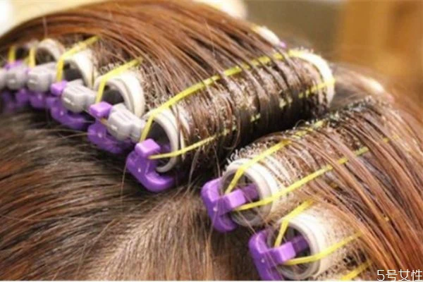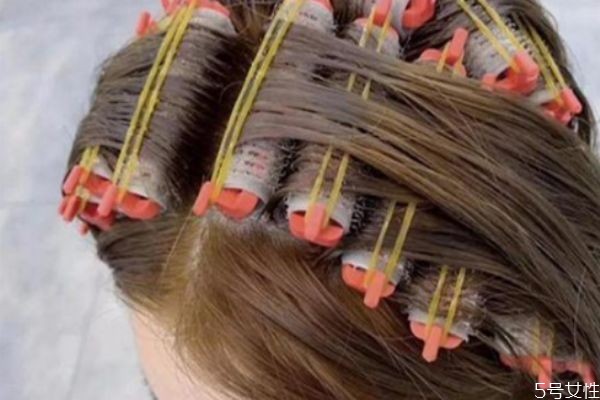 6、带杠冲洗3~5分钟,然后拆掉陶瓷卷杠,打卷涂放2号定型剂(塑料卷杠不用拆杠),停留15至20分钟后冲洗干净,造型所需发型即可。