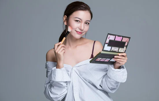 (2)妆前霜—粉底液—遮瑕—重点彩妆(眼妆,腮红修容)—定妆粉