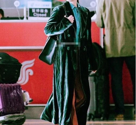 深咖色的长裤,搭上墨绿色的短大衣,薄荷绿的打底衫,色彩的和谐度很高。经典又时尚。