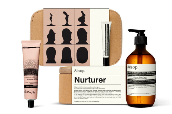Aesop 母亲节限定身体护理套装“ Naturer”系列包含“ Damaskan Rose Body ”洁面乳、带有木质香气的“ Resurrection ”护手霜、“ Cider&Citrus ”唇部护理,可保持双唇柔软,并富含水分。