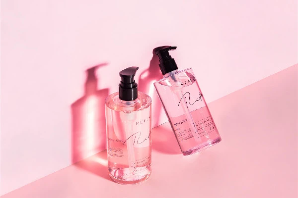 左手按压住瓶子的中间部位后,用右手拇指按住沐浴露泵头出口,其他手指压住沐浴露泵头顶端。