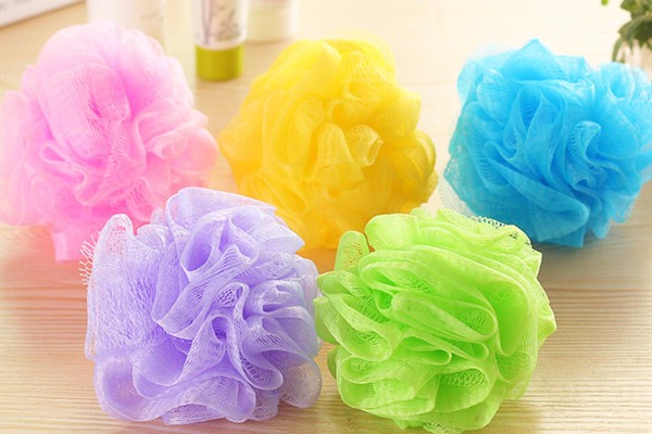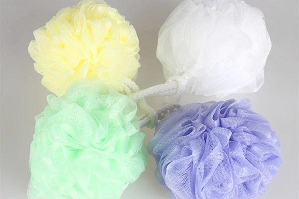 在蒸桑拿或洗澡时将沐浴露放入浴球上起泡后轻擦肌肤 ,产生大量的泡沫,品种繁多,一般是以聚乙烯(PE)为材料的。